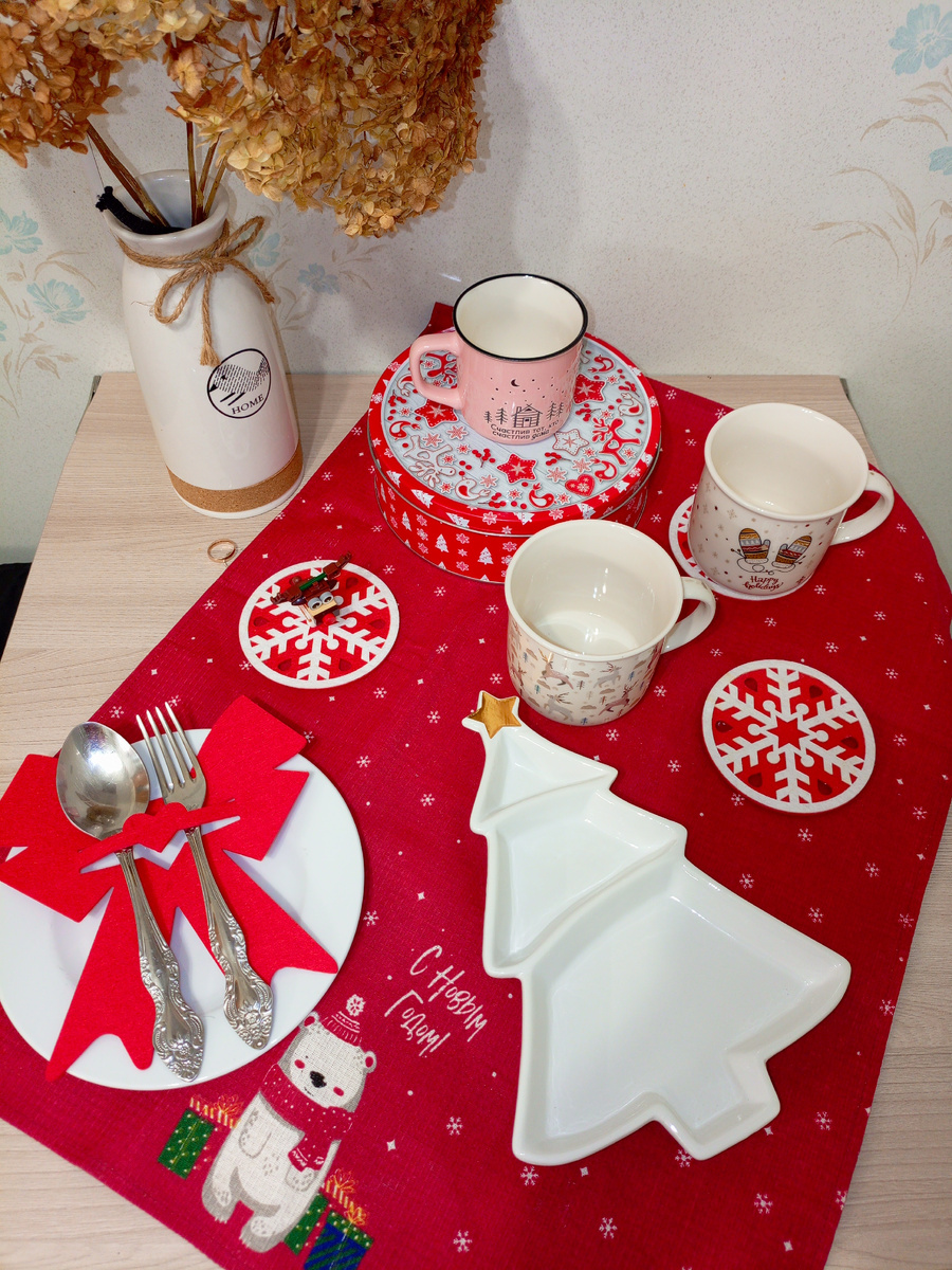 Всем привет! Перебирала шкафчик с посудой, решила показать вам какая посуда у меня есть на Новый год. Почти всё из магазина Фикс-прайс. Манажница в виде ёлки. В этом году есть ещё красные, синие и зелёные. Вместительная, бортик достаточно высокий. Мне очень нравится! Кружку покупала в Фикс-прайсе года четыре назад, а то и больше. Удобная, большая, классно смотрится кофе с маршмеллоу! Точно такая же но с оленями. А такую кружечку-малютку мне подарила коллега по работе. Она такая милая! Купила на ВБ(Вайлдберриз) фетровые держатели для столовых приборов на тарелку! Хочу ещё купить набор золотых столовых приборов. Они лучше будут смотреться! Фетровые подставки под кружки. А этот милый олень из коллекции магазина Магнит. Полотенце из магазина Магнит-косметик. Покупала летом по акции! Всем спасибо кто дочитал до конца! Подписывайтесь на канал 👍будет много интересного!