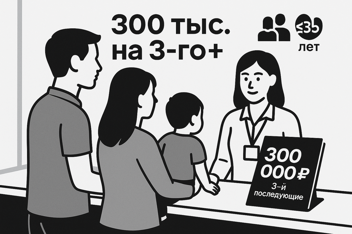 — Родителям: для получения 300 тыс. ₽ потребуется подтвердить возраст матери (≤35 лет включительно) и очерёдность рождения (3-й и далее) — следите за публикацией закона и перечнем документов (ЕГР ЗАГС/ЕГРН, справки о составе семьи, реквизиты). TACC