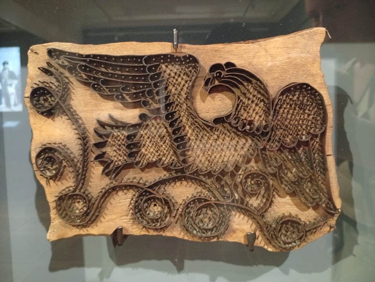 Сложность представлял бы также вопрос с определением узора на тканях и места их изготовления, если бы любезная смотрительница музея предварительно не показала нам, что различные образцы народных тканей можно посмотреть, открывая специальные выдвижные ящики, расположенные внизу витрин-столов. Младшему ребенку настолько понравилось открывать/закрывать эти ящики и смотреть содержимое, что он ещё не раз подбегал к ним, после того как мы перешли к осмотру другой части коллекции.
