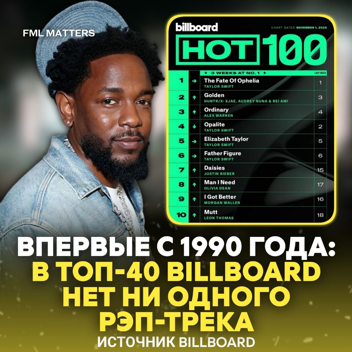 На этой неделе впервые с 1990 года, в чарте Billboard Hot 100 впервые нет ни одной рэп-композиции.