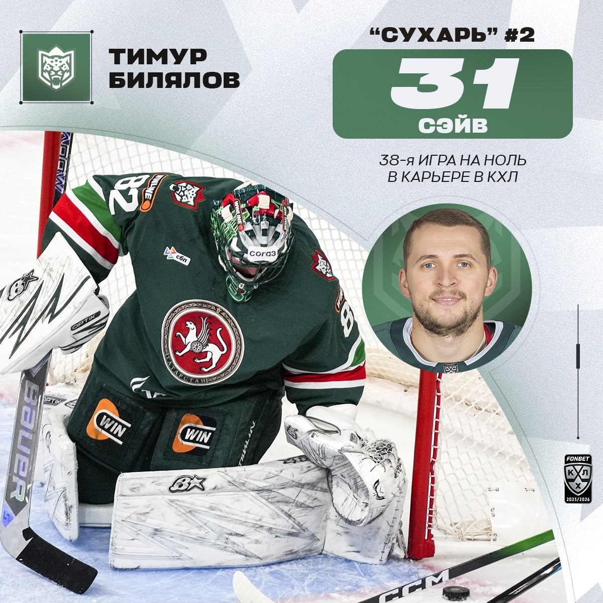 Бонус к рекордной победе казанцев — «сухарь» Тимура Билялова 🟢