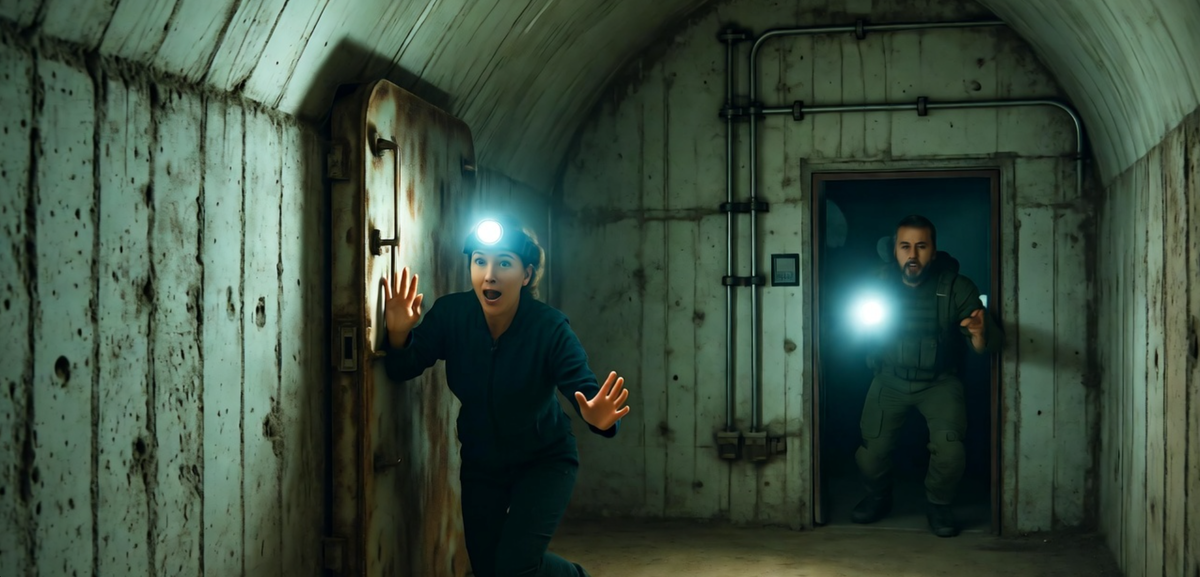 Лабиринт тоннелей объекта «Плутоний» казался бесконечным. Шёпот и скрежет, доносящиеся из темноты, заставляли Анну и Максима двигаться почти бесшумно, прижимаясь к холодным бетонным стенам. Они всё ещё следовали за отдалёнными звуками группы Бизона, но теперь каждый шаг давался с огромным трудом — страх перед невидимыми обитателями подземелья парализовал волю и заставлял сердце бешено колотиться. Впереди внезапно раздались приглушённые голоса, ставшие громче и отчётливее. Бандиты Бизона, судя по всему, остановились перед какой-то преградой. Послышались возгласы: «Дверь! Заклинило намертво!» и «Давайте ломом!». Затем — скрежет металла и тяжёлые удары. Анна и Максим замерли в тени арочного прохода, наблюдая за происходящим из укрытия. Внезапно грохот и крики сменились оглушительным, механическим рёвом. Из вентиляционной шахты над дверью, которую пытались взломать бандиты, вырвался густой белый пар с резким химическим запахом. Одновременно с этим пол в коридоре перед дверью, где стояли лю