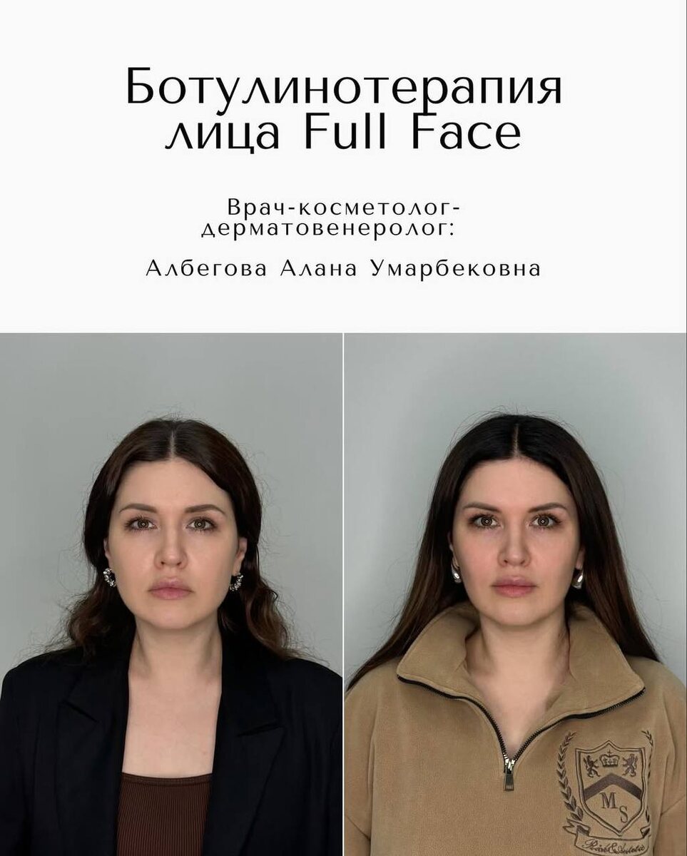 БОТУЛИНОТЕРАПИЯ ФУЛФЕЙС — ПЕРЕЗАГРУЗКА К 35! ✨ Делимся с вами потрясающим кейсом после проведения процедуры #FullFace препаратом Диспорт Наша постоянная пациентка в возрасте 34-х лет на протяжении последних 7 лет регулярно проходила ботулинотерапию препаратом Диспорт, корректируя только зону межбровья. ⠀ Но за месяц до своего дня рождения возникло желание более заметного преображения. 🎂 После очной консультации у врача-косметолога Аланы Умарбековны было принято решение провести ботулинотерапию по технике Full Face, исключив зоны, исключив зоны, где мимических морщин нет — вокруг глаз, рта и носа. ⠀ 💉 Выполнена инъекционная коррекция: ▪️ Лоб и межбровье — для разглаживания морщин и создания более открытого, спокойного выражения лица ▪️ Жевательные мышцы — с целью расслабления нижней трети лица, смягчения черт и профилактики деформационного типа старения ▪️ Подбородочная зона — для предупреждения формирования поперечных морщин и коррекции первых признаков возрастных изменений ⠀ Р