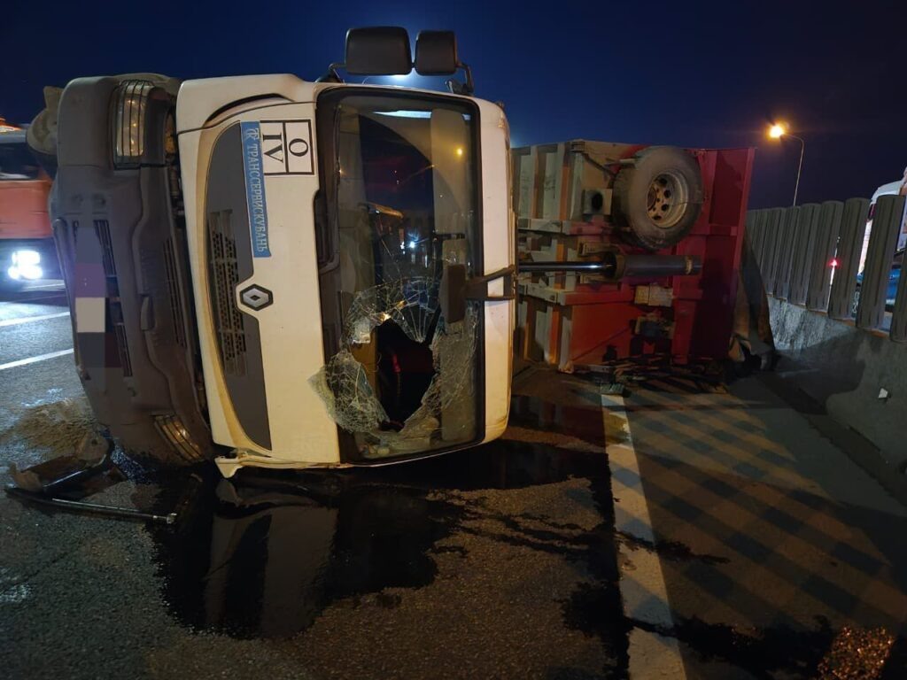 На трассе «Краснодар – Кропоткин» недалеко от хутора Ленина произошло крупное ДТП с участием четырех автомобилей. Как сообщили в ГУ МВД России по Краснодарскому краю, виновником аварии стал водитель грузовика, перевозившего песок. По предварительным данным, у большегруза во время движения лопнуло колесо. Водитель не справился с управлением, фура перевернулась и задела бетонные ограждения. После этого ее отбросило на встречную полосу. Там грузовик столкнулся с минивэном Kia, автомобилем Mercedes и еще одним грузовым транспортом. В результате ДТП пострадала пассажирка корейской машины. Женщину доставили в больницу.