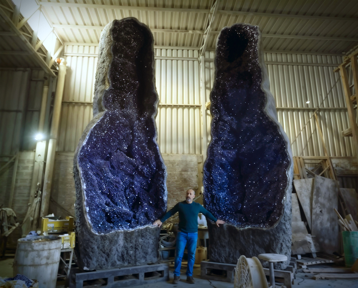 Такая жеода из уругвайской шахты Las Torres стоит почти миллион долларов. При этом сам аметист – вовсе не редкость. Это разновидность кварца, одного из самых распространённых минералов на Земле. Но когда кристаллы вырастают внутри гигантской полости, обычный камень превращается в сокровище. Всё начинается миллионы лет назад. Лава остывает, в ней лопаются пузырьки газа – остаются пустоты. Через пористый базальт просачивается вода, несущая минералы. Кварц начинает расти, выстраивая кристаллы изнутри. А фиолетовый цвет – дело радиации. Естественное излучение из пород вокруг «будит» атомы железа в кварце: те меняют структуру и отражают свет иначе. Чем больше железа, тем насыщеннее оттенок. Шахта Las Torres в Уругвае – один из мировых лидеров по добыче аметистовых жеод. Здесь древний лавовый поток создал идеальные условия для их роста. Мелкие камни добывают в открытом карьере, а гиганты прячутся глубоко под землёй. Чтобы их достать, шахтёры используют контролируемые взрывы – разрывают базал
