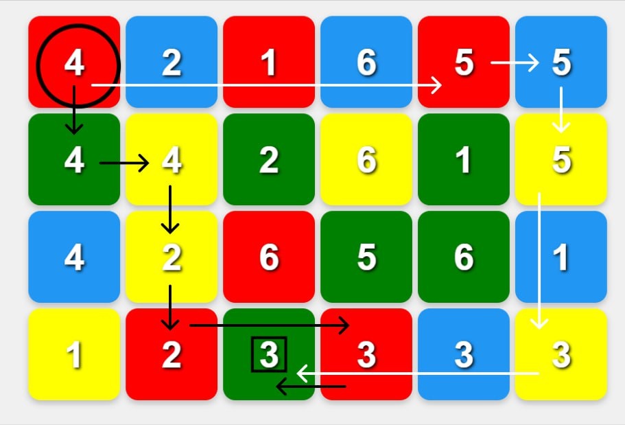Цифроботы - логическое дополнение для игры Битва Големов. В эти выходные на тестировании в группе ВК "Тестировщики СИМПЛРОБОТ". Задача, играя за робота, найти первым маршрут от стартовой точки до бочки с компонентами робота. При этом каждый раунд их положение случайно: вы на кубиках (по очереди) выкидываете стартовую точку и целевую точку с сундуком и за 1 минуту времени должны первым выкрикнуть, за сколько ходов вы туда дойдете (а иногда сказать, что ходов нет). И не только громко сказать. но и показать маршрут роботом. Но ходить можно только по вертикали или горизонтали и только на тот же цвет или цифру каждый раз. Например, в данном примере я доберусь от старта (кружок) до целевой точки (квадрат) за два хода. Если дошли - компоненты робота ваши. Не дошли, отдаете один из своих заработанных компонентов. Для тестирования нужно будет распечатать один лист A4 (можно даже черно-белым, но лучше на цветном принтере), вырезать 24 жетона и памятку для цветов и использовать компоненты из