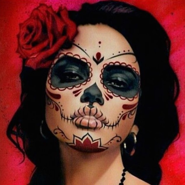 Добро пожаловать в мастерскую magic_dolls, ООАК! Продолжаю рассказывать о переделке Спектры Монстер Хай в портретную куклу с макияжем в стиле Санта Муэрте. Мейк нужен примерно такой. Но черты лица должны быть похожи на девушку, для которой кукла предназначается в подарок. Заказчица Софья выбрала Спектру, тк её молд идеально подходит. При росписи куклы, у которой скинтон отличается от человеческого цвета кожи, в первую очередь я тонирую лицо в бежевый цвет. Три слоя пастели закреплёны клиром. После этого можно приступать к рисовке. Не смотря на то, что вокруг глаз будут чёрные круги, форму бровей мне пришлось прикинуть. Как раз, чтобы определить границы этих чёрных кругов над глазами. У девушки, которую я пытаюсь изобразить, очень большие и выразительные зелёные глаза с чётко прорисованными верхними веками. Чтобы чёрные линии век были заметны на чёрном фоне кругов, пришлось постараться)). Но у меня это получилось. Начала наносить элементы рисунка. Заодно добавляю цвета в радуж