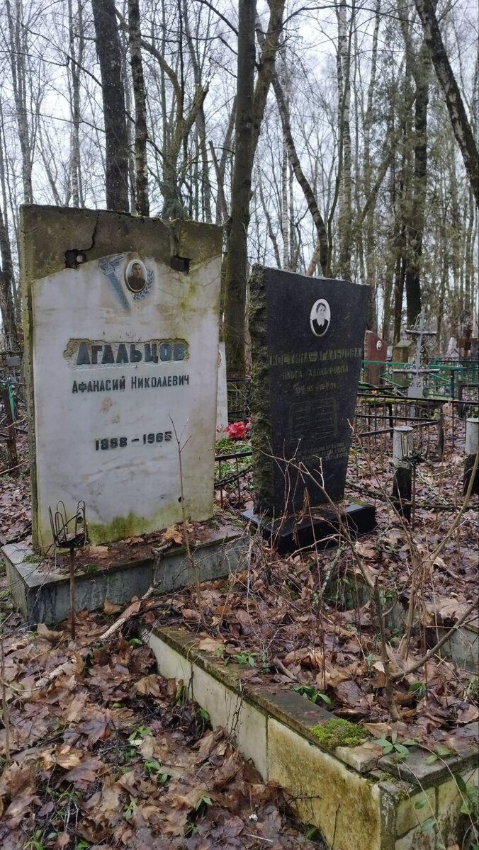 На старом Борисовском кладбище Серпухова, под сенью вековых деревьев, по соседству стоят две заброшенные могильные плиты