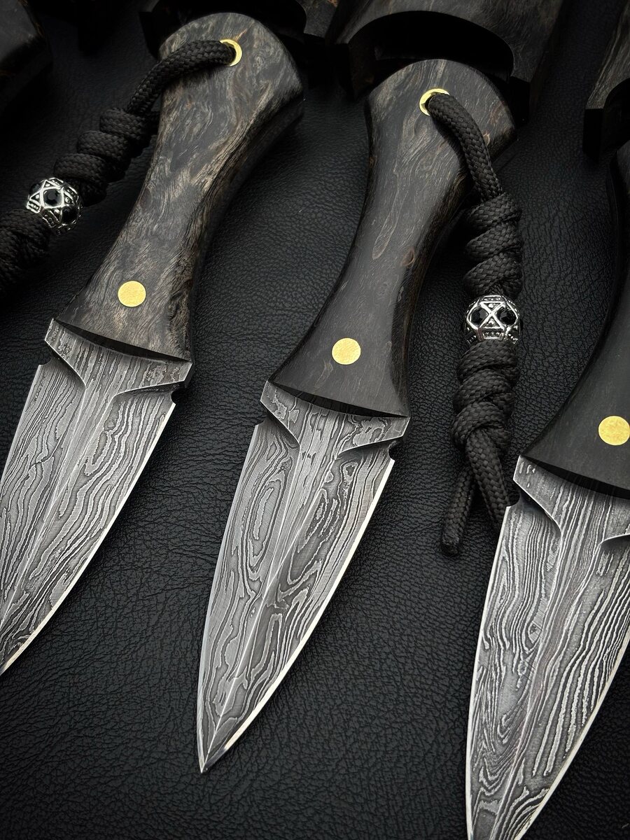 Четыре черных «Ворона» шейного ношения ⚔️ •Дамаск •Карельская берёза #нож #edc #knife
