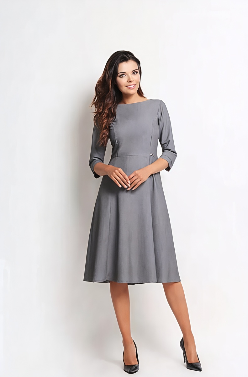 Альтернатива для тех, кому карандаш кажется слишком строгим. Лёгкое расширение от талии скрывает бёдра, создавая женственный силуэт. Главное — избегать излишней пышности. Степень расклешения должна быть умеренной.
