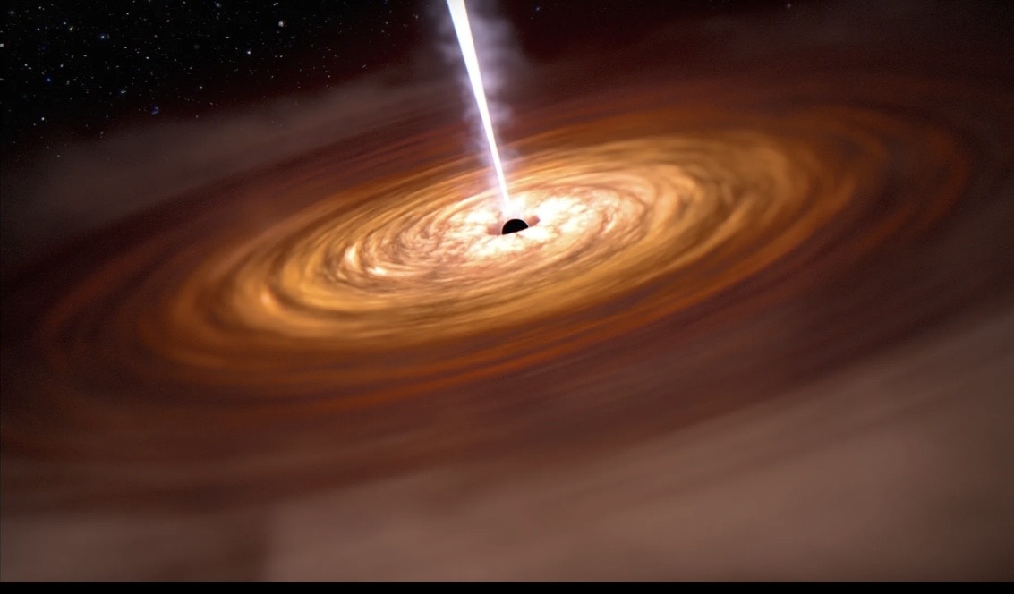 Сама черная дыра, как и положено, не испускает света, но ее «пиршество» создает свечение, которое может в тысячи раз превосходить по яркости такие галактики, как наш Млечный Путь.