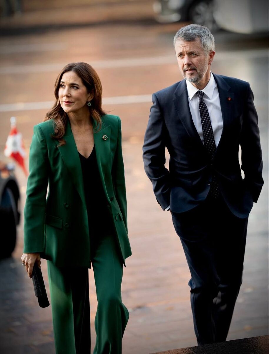 В последний день государственного визита в Латвию король Фредерик и королева Мэри посетили Латвийский национальный художественный музей, который был возведен в 1903-1905 годах архитектором Вильгельгом Нойманом. Для выхода королева Мэри предпочла изумрудный брючный костюм. Как вам образ королевы?