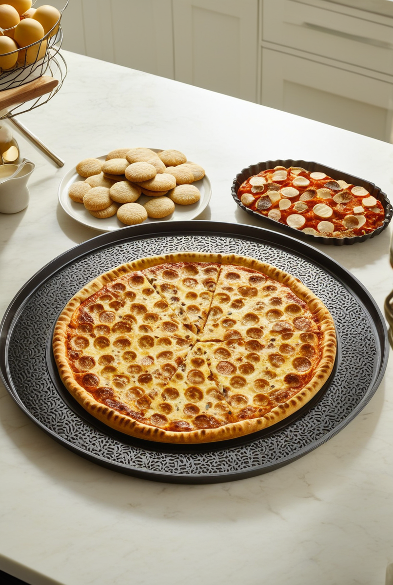 Для хрустящей основы для пиццы нет ничего лучше, чем перфорированный лист для духовки. Отверстия обеспечивают циркуляцию горячего воздуха, что дает идеальный равномерный прогрев дна. Чаще всего это круглый или прямоугольный алюминиевый или стальной деко. Если такого нету, подойдет и хорошо разогретый чугунный плоский лист, который имитирует эффект печи. Главное, чтобы тесто не пригорало снизу, а становилось румяным.