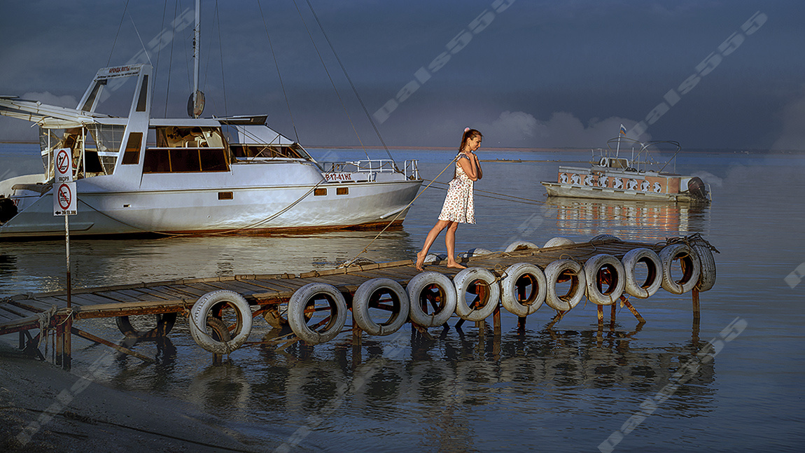 Закат тонет в тихих волнах, и свет ложится на воду, как прощание. Девушка стоит на старом пирсе, в лёгком платье, с ветром в волосах. Она тянет верёвку — улыбается, словно играя с морем, но где-то в глубине взгляда мерцает печаль — тихая, тёплая, та, что приходит, когда сердце чувствует конец прекрасного дня. Катер неподвижен, чайки медленно кружат над водой, и кажется, что само море не хочет нарушать покой прощального вечера. Она знает — завтра всё будет иначе: солнечный блеск уйдёт, шум волн станет холоднее, а этот вечер останется с ней — в сердце, как дыхание последнего лета. Она тянет верёвку, чувствуя её шершавое сопротивление, и катер послушно, почти нехотя, подплывает к самому краю пирса. Доски под ногами, пахнущие смолой и солёной сыростью, издают тихий скрип, будто вторя её мыслям. В руке — не просто верёвка, а тонкая нить, связывающая её с этим мгновением, с этим уходящим днём. Она отпускает верёвку, и та мягко ложится на воду, образуя на поверхности идеальный круг. Он рас