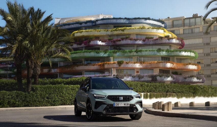 Arona сохраняет привычную форму компактного кроссовера, но теперь носит переднюю часть с более чёткими линиями и новыми деталями. Решётка радиатора следует последнему дизайнерскому направлению SEAT, используя шестиугольный контур с ромбовидным рисунком сетки. Инженеры уменьшили толщину светодиодных фар, чтобы визуально расширить и «успокоить» переднюю часть автомобиля. Технически это также дало выигрыш в яркости с энергоэффективностью. Бампер также был изменён: датчики и противотуманные фары аккуратно обрамлены чёрными секциями, что делает дизайн более организованным. По бокам пропорции Arona остались прежними, но новые 16-18-дюймовые легкосплавные диски добавляют больше разнообразия. S