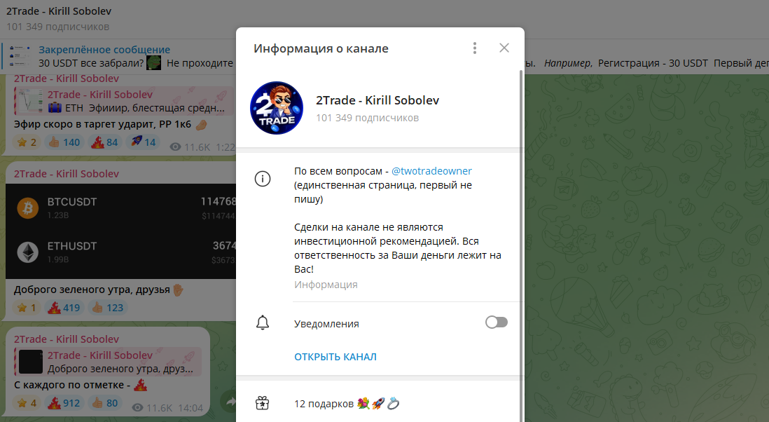 Свежий пример — канал 2Trade и его автор Кирилл Соболев, который, по данным проверенных источников, обманул подписчицу по схеме “50 на 50”, прикрываясь статусом партнёра биржи BingX. ✅ Хотите понять, где действительно можно зарабатывать онлайн без подобных ловушек — вот проверенный проект. Там реальные кейсы и безопасные способы заработка без “наставников” и рефералок. Админ 2Trade представляет себя как “опытного трейдера”, который работает напрямую с подписчиками.