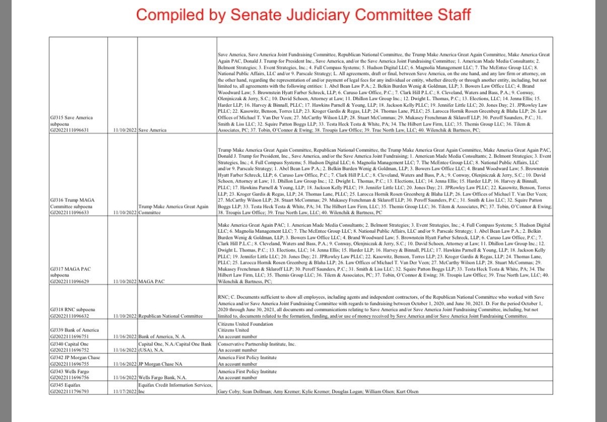 Biden’s DOJ subpoenaed 400 Republican targets during January 6 investigation Prosecutor Jack Smith wanted: – Bank records – Phone and email logs – ANY evidence of communications with Trump TINY sample of bank searches shown here