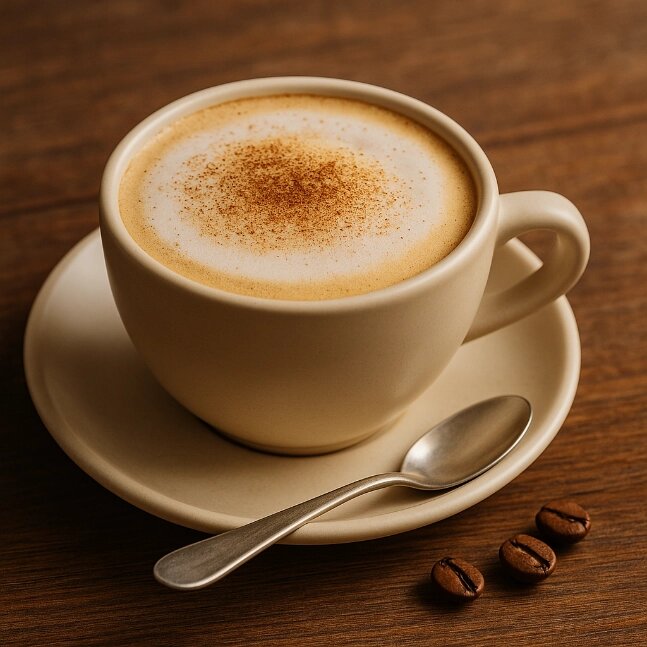 Мягкий, сливочный, чуть ванильный напиток с плотной текстурой и тонким ароматом кофе. Он не требует сахара, потому что сладость появляется естественно — из сливок и сиропа.