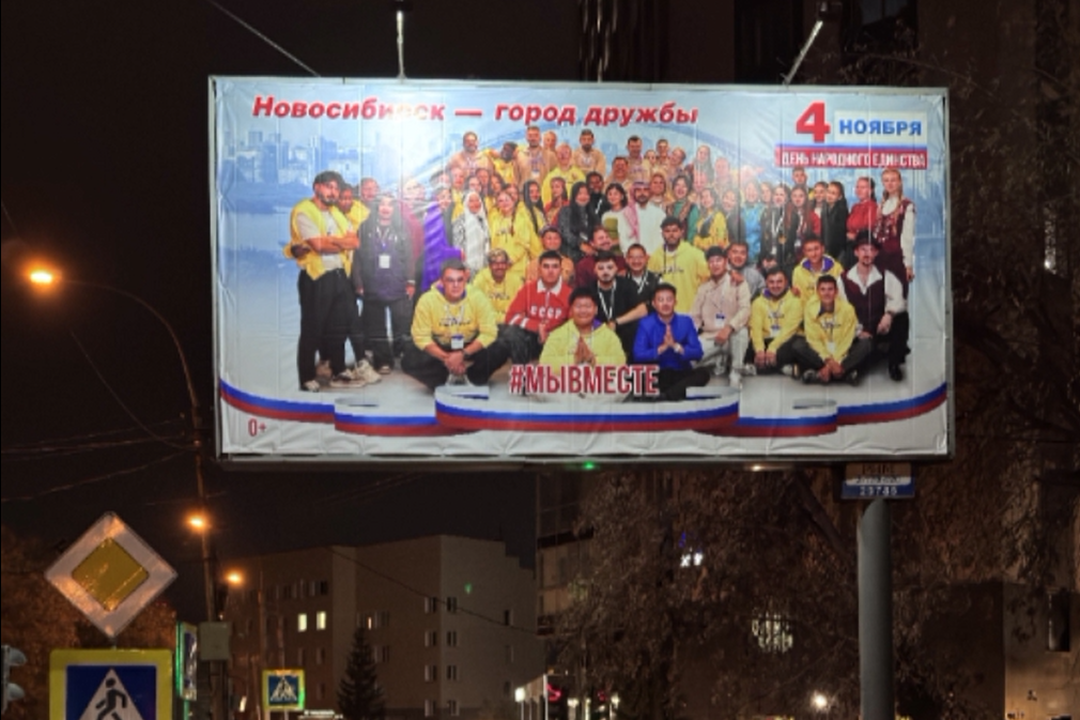 В канун Дня народного единства в Новосибирске появились «тематические» рекламные щиты, вызвавшие широкий резонанс среди местных жителей. На билбордах красовались представители двух десятков национальностей, при этом русских едва можно было различить. Эти баннеры горожане восприняли как попытку нивелировать значение русского народа как основного государственно-образующего этноса России. — Где здесь на плакате русские и сколько их? — Почему арабский шейх в центре? Сибирь — что, традиционное место кочевий бедуинов на верблюдах? — Праздник очень важный для нашей страны, но меня неприятно удивило содержание данного плаката, которое расходится со смыслом этого праздника. На лицо — подмена понятий и искажение фактов, приуроченных к этому празднику. В 1612 году наша страна единением многонациональностей освободилась от польских захватчиков. Сейчас некоторые странные люди пытаются на этом спекулировать и продвигать свои идеи. — Мне вообще непонятно, за чей счёт такие плакаты делаются. На одних