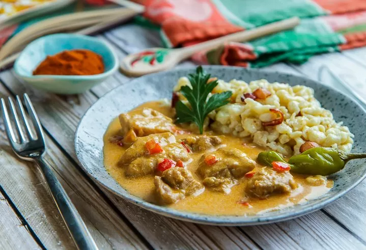 9. Подавайте паприкаш обжигающе горячим, сопроводив его каким-нибудь гарниром, который хорошо сочетается с блюдами в подливке.