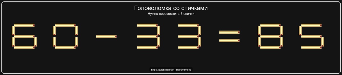 Отличная задачка для развития мозга! 🧠 Всего 3 спички нужно переместить для верного решения! 🔥