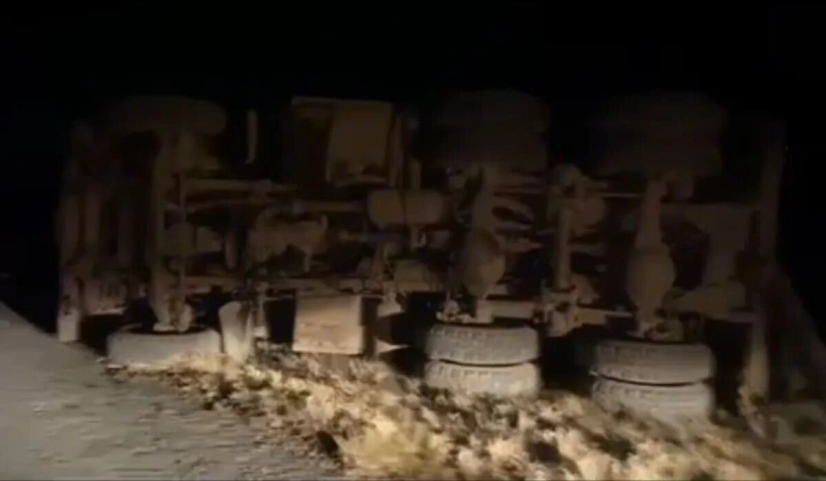 Нетрезвый водитель опрокинул КамАЗ на трассе в Павлодарской области (ВИДЕО)