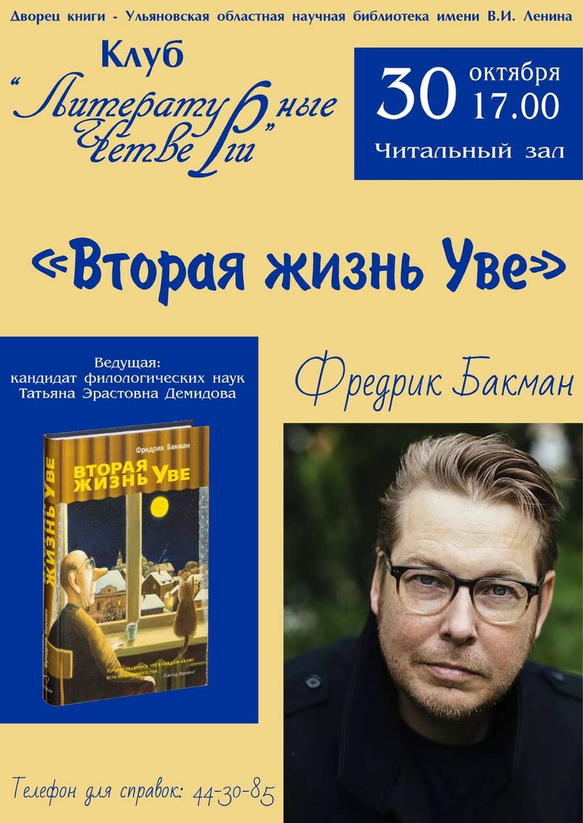 Обсуждение книги Фредрика Бакмана «Вторая жизнь Уве» 🗓️ 30 октября 17:00 📍Дворец книги В качестве эксперта выступит кандидат филологических наук, доцент кафедры русского языка, литературы и журналистики УлГПУ Татьяна Эрастовна Демидова. 🏷️ вход свободный #30октября25@culturnik