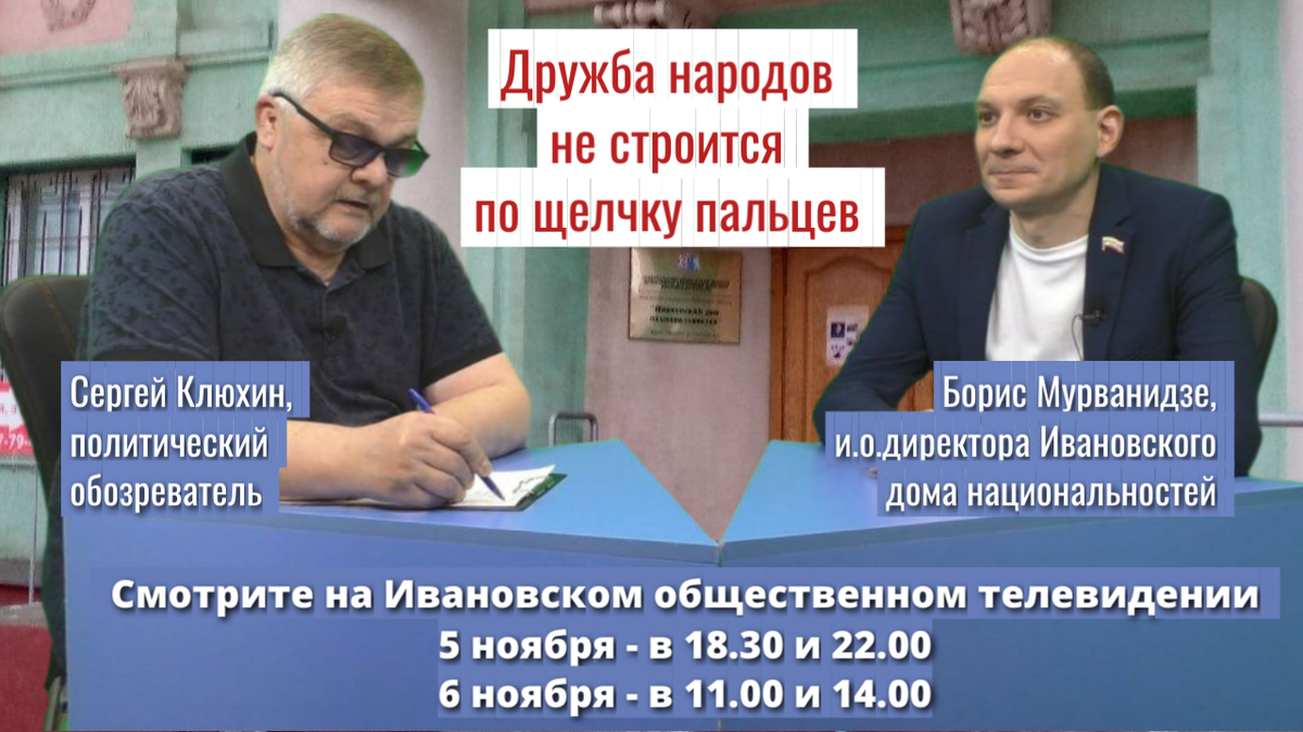 В программе Ивановского общественного телевидения руководитель Ивановского дома национальностей Борис Мурванидзе рассказал о том, как сегодня выстраивается работа по укреплению межнациональных отношений, адаптации мигрантов и просвещению молодежи. По словам Мурванидзе, за последние годы акценты в деятельности учреждения заметно изменились. «Если раньше в приоритете были концерты, фестивали и праздники, то сегодня основной упор делается на просветительскую и воспитательную работу, - отметил он. - Мы учим детей мигрантов русскому языку, рассказываем о традициях, законах и культуре России. Ведь уважение к дому начинается с уважения к его хозяину». В Доме национальностей действуют исторический, литературный и языковые клубы, проходят курсы для трудовых мигрантов и их семей. Занятия ведут приглашённые педагоги и эксперты, а все программы остаются бесплатными. Особое внимание уделяется работе с местным населением. «Дом национальностей работает для всех, в том числе и для русских, - подчёркив