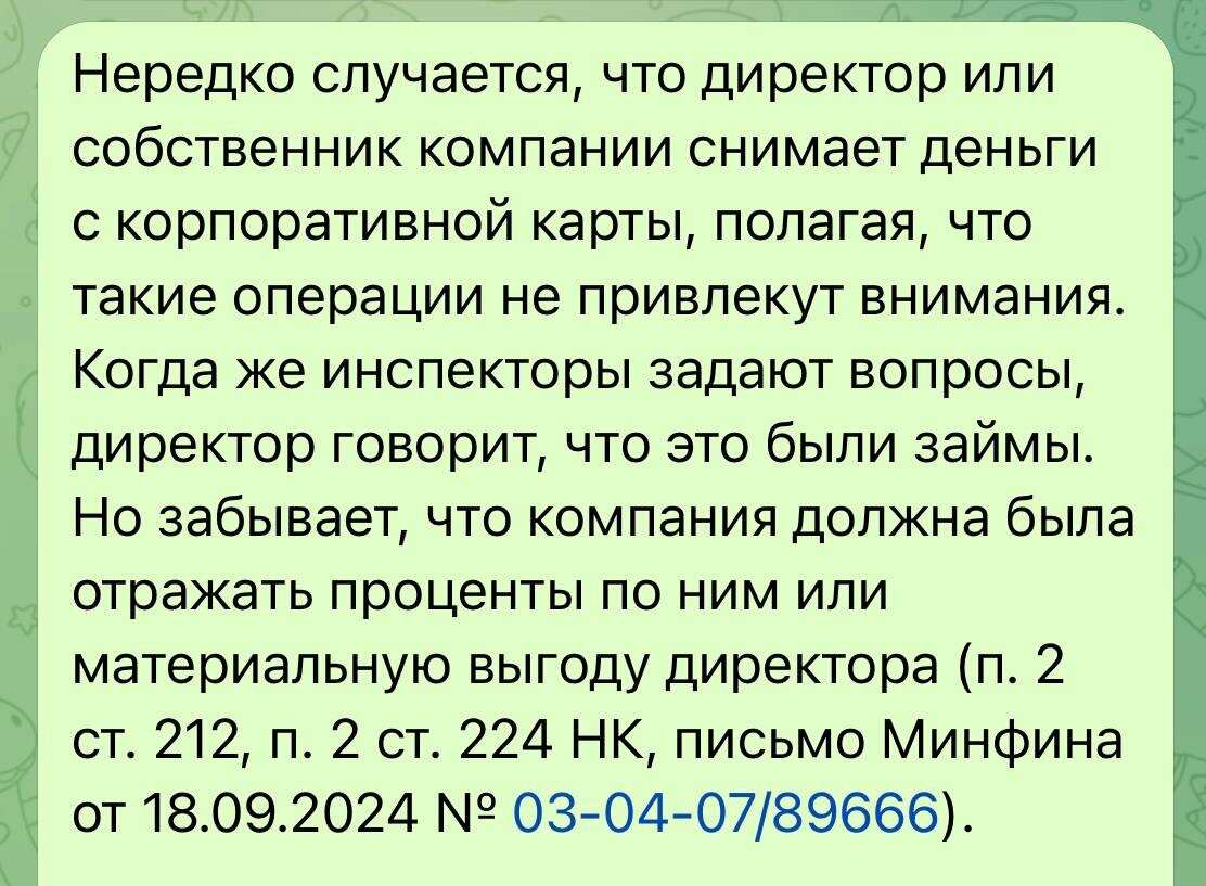 Снятие денег с карты компании под видом «займа» — опасная игра, которая часто приводит к проблемам с налогами