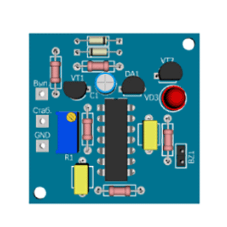 Схема предназначена для установки в стабилизированный блок питания и извещения световой и звуковой сигнализацией о перегрузке. Сигнализация собрана на элементах микросхемы DD1 и каскада на транзисторе VT2. На VT1 и DA1 собран стабилизатор для питания DD1, причем VT1, VD1, VD2 и резисторы R2, R3 составляют генератор тока с широким диапазоном входных напряжений. На выходе генератора тока установлен параллельный стабилизатор напряжения DA1, обеспечивающий питающее напряжение микросхемы DD1 на уровне 2,5 В, вполне достаточное для работы микросхемы КМОП указанного типа. На генератор тока поступает напряжение с выпрямителя блока питания, а левый по схеме вывод подстроечного резистора R1 подключают к выходу стабилизатора напряжения. При нормальной работе стабилизатора движком резистора устанавливают напряжение на входных выводах элемента DD1.1 выше порогового, которое при данном напряжении питания должно быть около 1,5...1,7 В. Тогда на выходе этого элемента будет низкий логический уровень