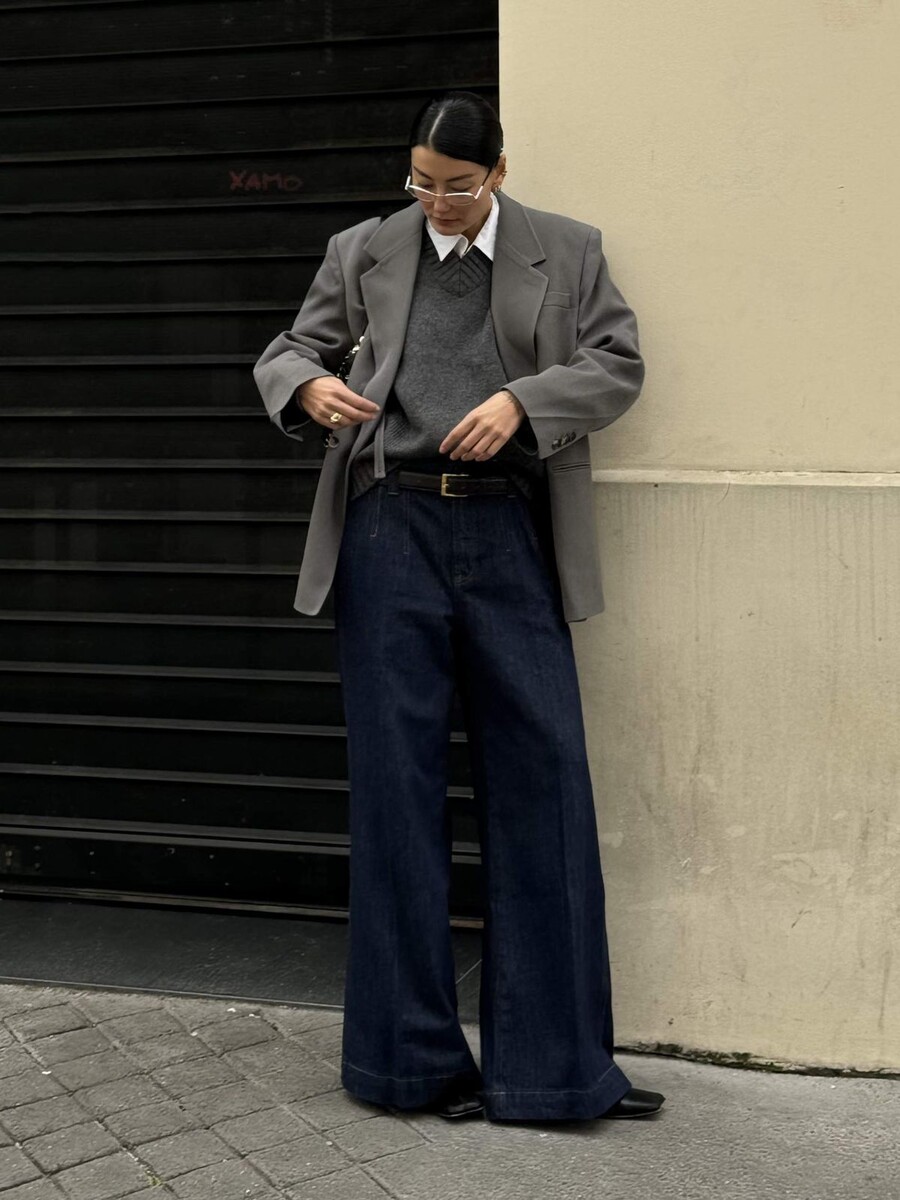 Широкие джинсы и жакет — то, что француженки носили всегда. Это как кофе и круассан: работает без промаха.