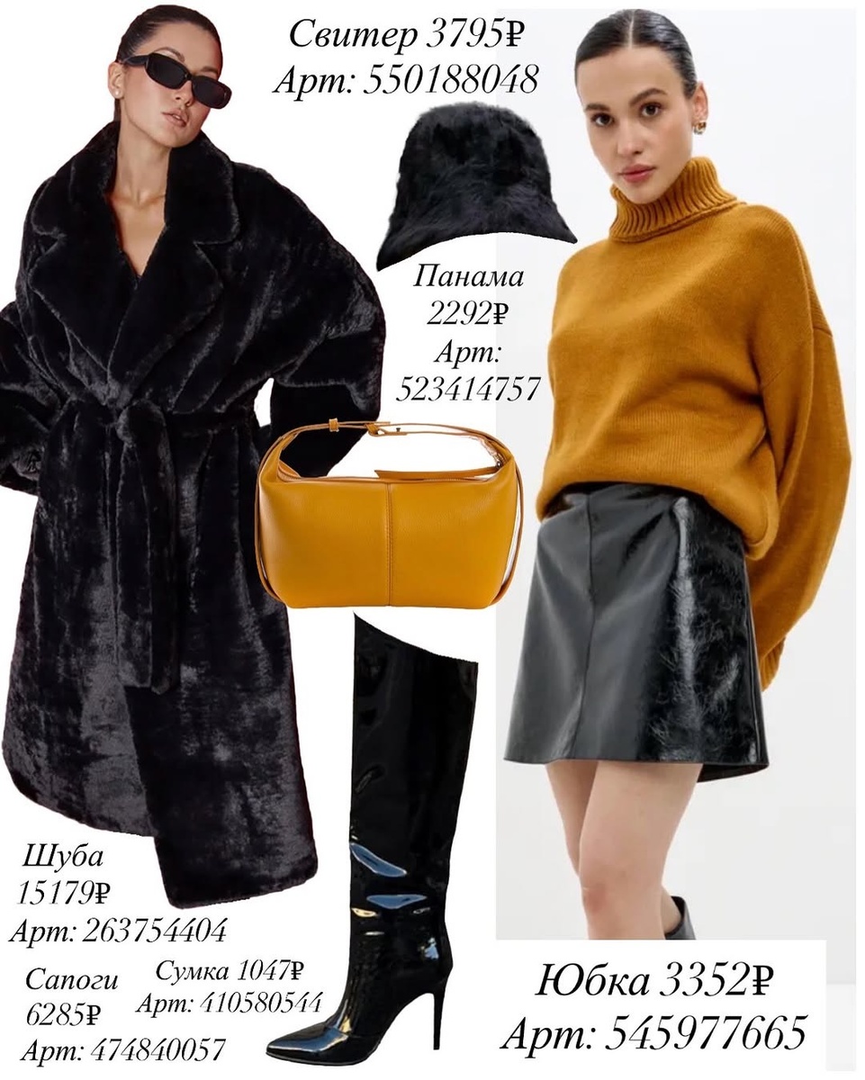 Вещи из этой подборки объединяет игра фактур и уравновешенная палитра. Чёрный глянец и мягкий мех делают образ вечерним без усилий, а верблюжий и оливковый — отвечают за комфорт и тепло. Соблюдайте простые правила: один главный акцент, контраст матового и глянцевого, вертикали за счёт обуви и верхней одежды. Тогда любой комплект из этих артикулов будет выглядеть современно, дорого и, главное, по-зимнему уютно.