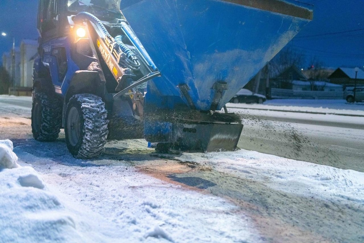 Дорожники начали зимний уход за улицами и дорогами Салехарда. Как рассказал мэр города Алексей Титовский в социальных сетях, проведено специальное совещание с организациями-подрядчиками, где были согласованы дальнейшие мероприятия. Сейчас основное внимание уделяется борьбе с гололёдом. Работают одновременно четыре бригады круглосуточно, очищая проезжую часть, пешеходные зоны, остановочные комплексы и учреждения социальной сферы специальными реагентами. Ежедневно используется порядка двух-трех самосвалов антигололёдной смеси. Всего же на поддержание дорожного покрытия зимой привлекается около 70 единиц специализированной техники.