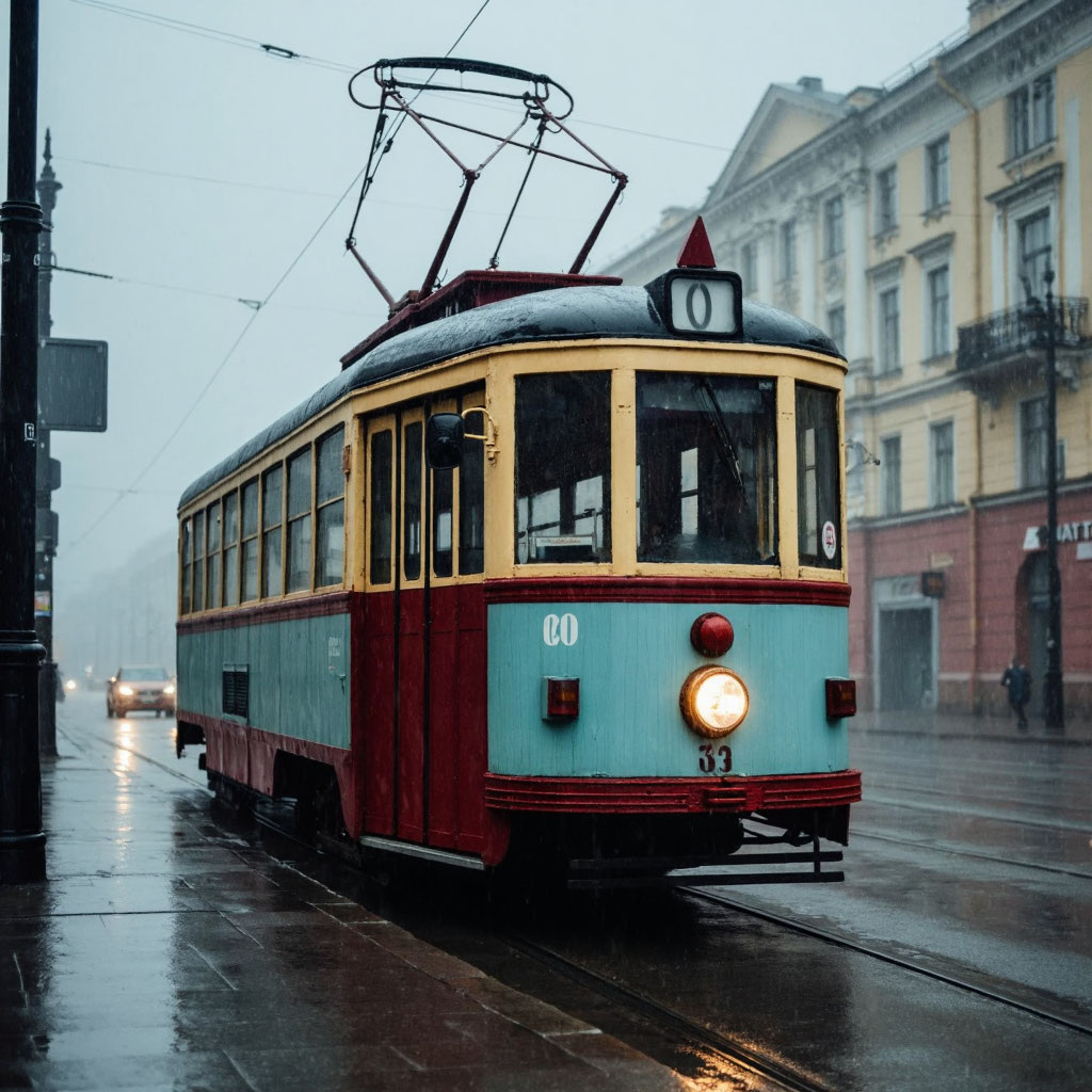 Он выглядит как старый «голубой» трамвай образца 1920-х: деревянные сиденья, латунные поручни, фары, мерцающие, как свечи. Двери открываются без звука. В салоне — пассажиры в старомодных пальто, шляпах, мундирах. Никто не разговаривает. Все смотрят в окно. Или… на тебя, если ты стоишь на остановке.