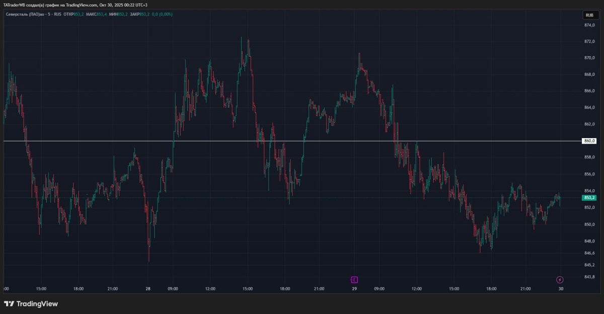 🧠 УХ КАК НЕ ПРОСТО.... ✅ Вчера индекс закрылся НИКАК. Вечерняя торговая сессия ничего не изменила. Вот и получается, что и адекватны картинок на сегодня практически нет. Поэтому придется смотреть достаточно трудные условия, причем в разные стороны. Одна из бумаг, с которой планирую работать сегодня: $CHMF Шорт, ложный пробой 860 ❌ Стоп поставлю 0,5%. Тейк +1-1,5%. При достижении +0,% поставлю стоп в без убыток. Больше идей в Базе. Это условие торговли, то есть если будет вход, зайду. Не будет входа, НЕ зайду. Северсталь актуальна, пока она торгуется над 849! Как только Северсталь уйдет ниже 849 - идея не актуальна. Как отыгрывать ложный пробой? (видео прикрепленное к посту) Хорошего четверга! 🤝