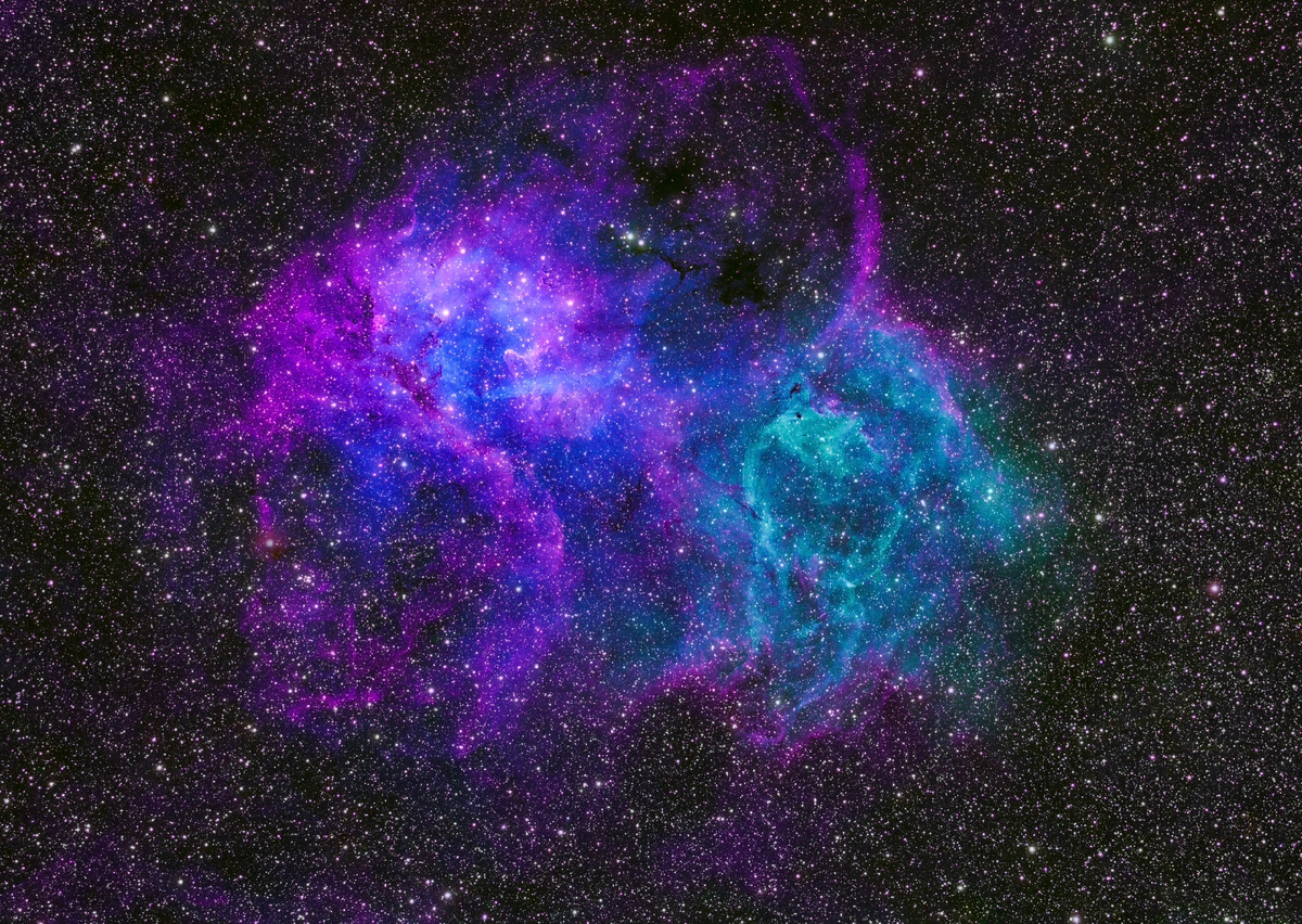 «Я использую узкополосные фильтры для съемки объектов глубокого космоса. Все, что видите на картинках - это диапазоны длин волн свечения водорода, кислорода и серы. Сейчас, например, я собрал около 30 часов от туманности Кальмар - это, кстати, очень мало, надо еще примерно столько же. Дело в том, что она очень слабая, так как светится в линии кислорода. А кислород - один из самых «трудных» элементов, который мы можем заснять через телескоп - его очень мало и от него очень блеклое свечение», - делится астрофотограф.