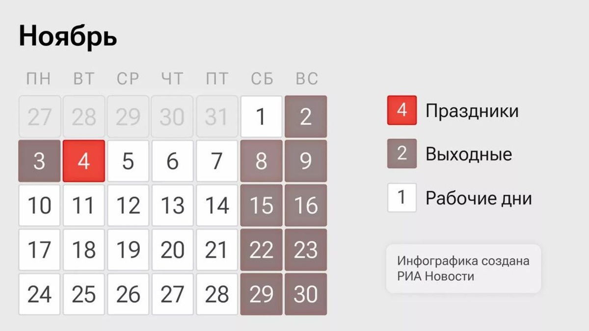 Затем последуют три праздничных выходных дня со 2 по 4 ноября.