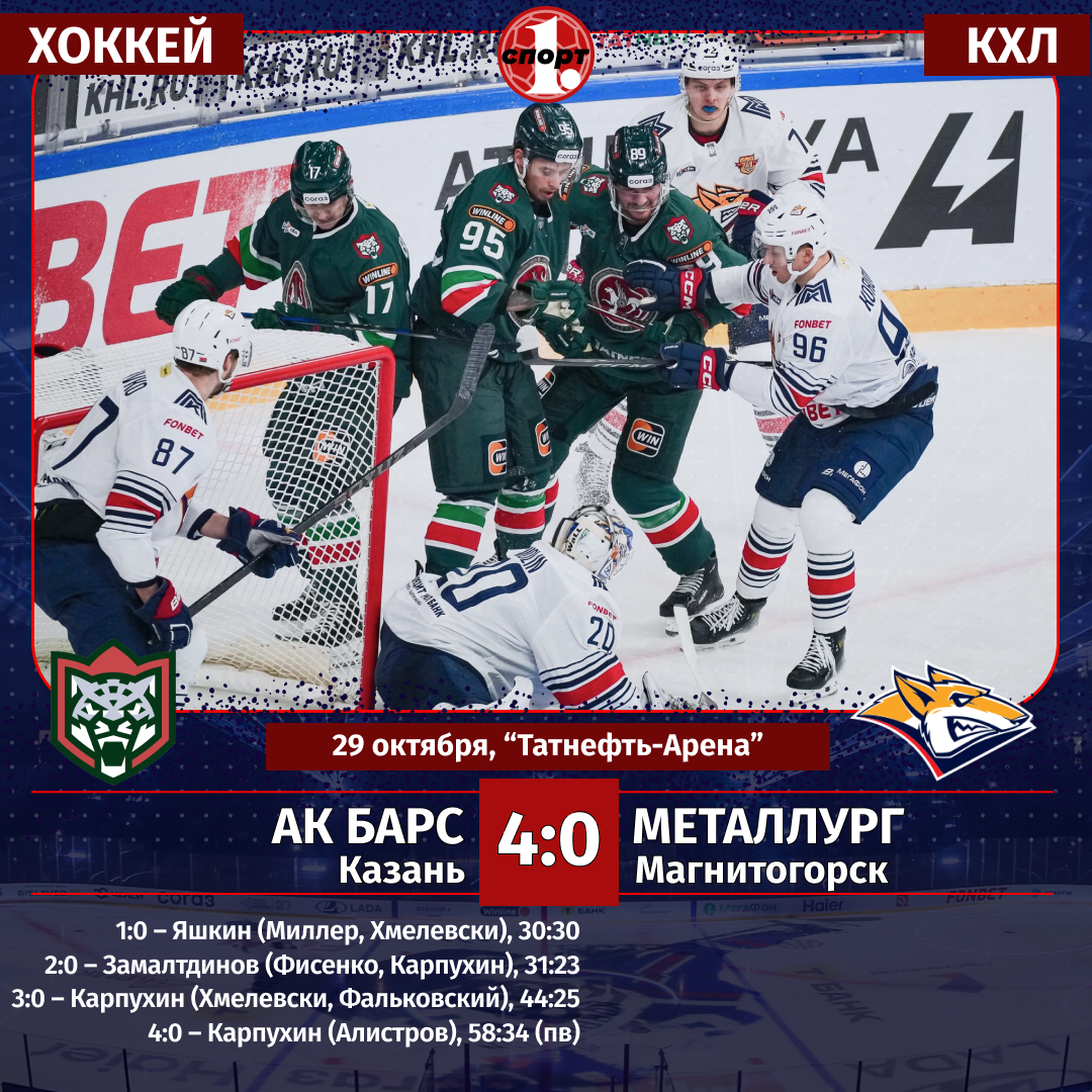 Хоккейный клуб «Металлург» впервые в сезоне потерпел «сухое» поражение, уступив в гостях «Ак Барсу» — 0:4. Казанцы одержали 11-ю подряд победу в КХЛ, установив новое клубное достижение. Благодаря мощному спурту команда из Татарстана вплотную приблизилась к лидеру Восточной конференции, сообщает корреспондент ИА «Первое областное». После неудачного старта хоккеисты из Татарстана выдали шикарную серию из десяти побед кряду, тем самым повторив клубный рекорд в КХЛ. Гипотетическая победа над «Металлургом» могла не только обновить достижение, но и сократить отставание от Магнитогорска до минимума. Ключевые события в матче произошли во втором периоде. Открыл счет в матче Дмитрий Яшкин, реализовавший большинство. Почти тут же казанцы удвоили преимущество, а первый гол в сезоне оформил Радэль Замалтдинов. Кстати, это для него вторая заброшенная шайба в карьере в КХЛ. Хоккеисты «Металлурга» вышли на лед в третьем периоде как на последний бой. И обрушили шквал атак на ворота Тимура Билялова. Но