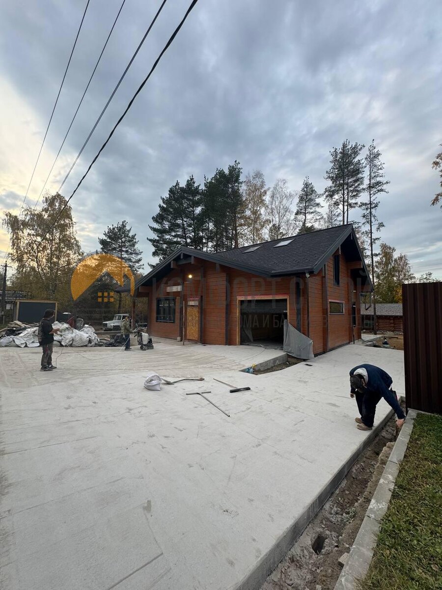 🏡 Проводим работы по монтажу въездной группы на участок и отмостки на доме из клееного бруса в п