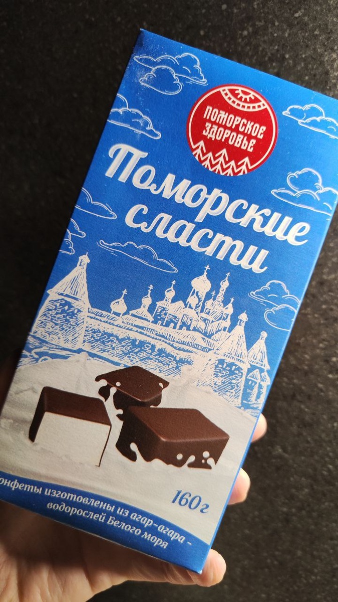 Конфеты на агар-агаре с Соловков🇷🇺 Конфетки визуально похожи на "Птичье молоко", но названы просто конфеты на агар-агаре. Агар-агар — это растительный желирующий агент, получаемый из красных морских водорослей. Он представляет собой смесь полисахаридов агарозы и агаропектина и служит натуральной альтернативой желатину. В водном растворе агар-агар образует плотный гель при охлаждении и используется для приготовления желе, зефира, мармелада, заливных блюд и других десертов. На Соловках водорослей полно и грех их не использовать💃 При открытии упаковки чувствуется приятный аромат темного шоколада. Конфетки упругие и форму восстанавливают быстро. Глазурь не быстро тает в руках и не отваливается от конфетки, что респект👍 Белая часть мего воздушная и тает во рту. Так как конфетки на агар-агаре, а он безвкусный, никакого послевкусия. Что ещё привезли с Соловков ➡️тут #десерт #обзореды #вкусняшка #сладкоежка #фудблог #фудобзор #соловки