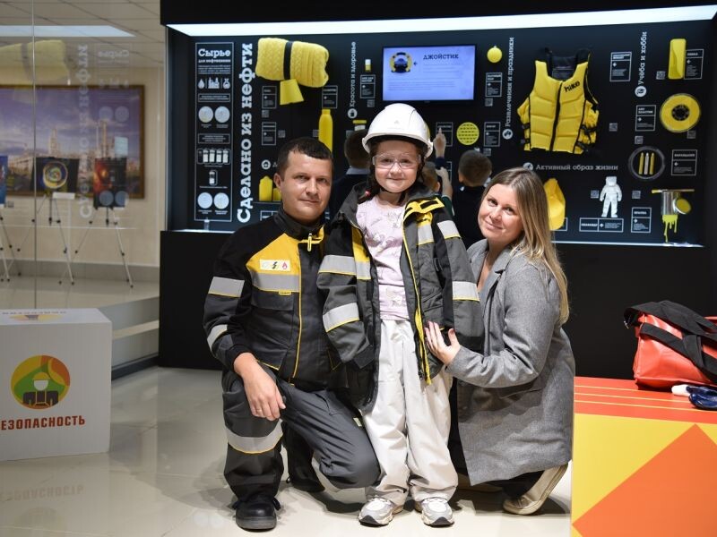 Корпоративный музей НПЗ интерактивен: многие экспонаты здесь можно потрогать руками, самостоятельно выбрать видео для просмотра, тему для прослушивания и прочтения. Маленьким нефтяникам в этом помогают их родители. И это тоже важная часть экскурсии, ведь для любого ребенка информация, которую узнал под руководством «своего» взрослого, особенна важна и запомнится надолго. Получить представление о профессиях отрасли помогает и фотозона с образцами спецодежды, которую можно примерить.