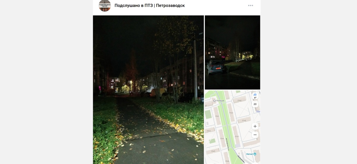 Они просят ответственных за уличное освещение в карельской столице решить проблему.