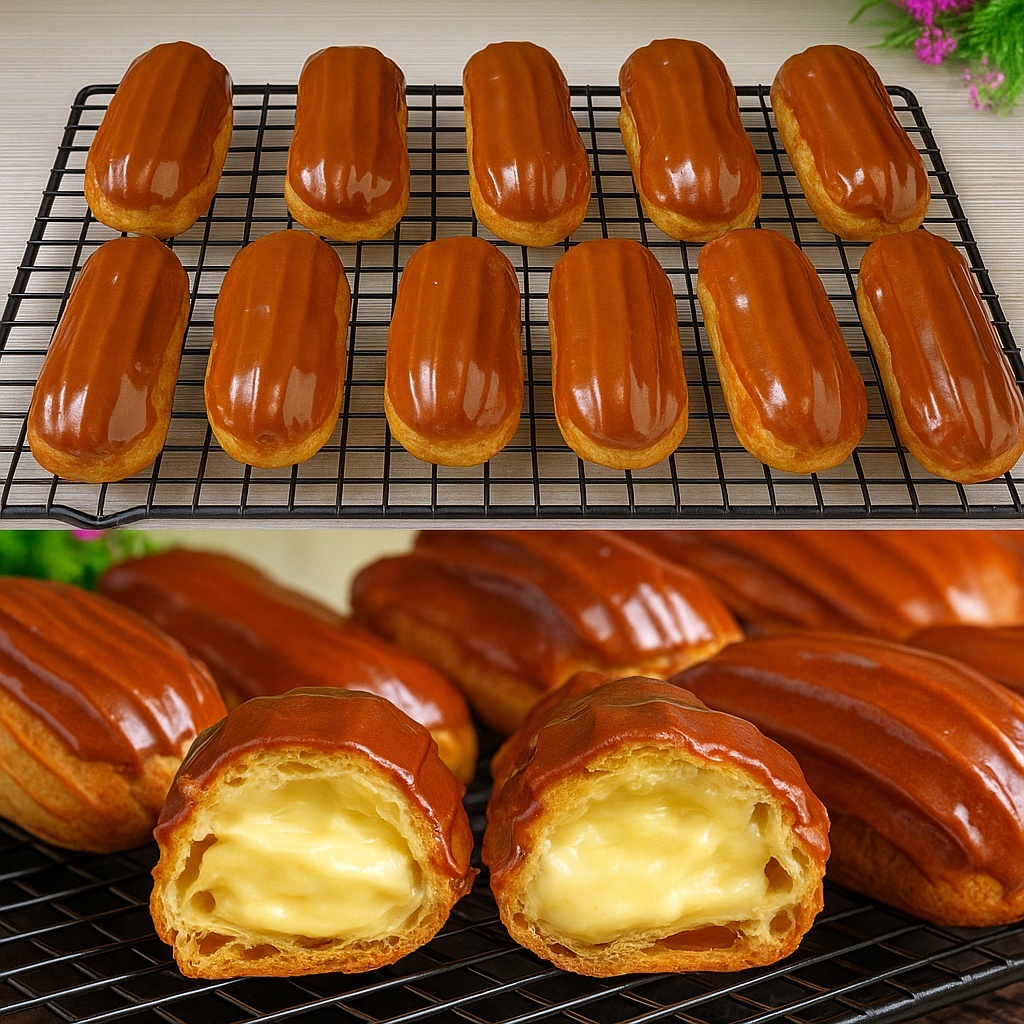 КЛАССИЧЕСКИЕ ЭКЛЕРЫ С ЗАВАРНЫМ КРЕМОМ И ШОКОЛАДНОЙ ГЛАЗУРЬЮ