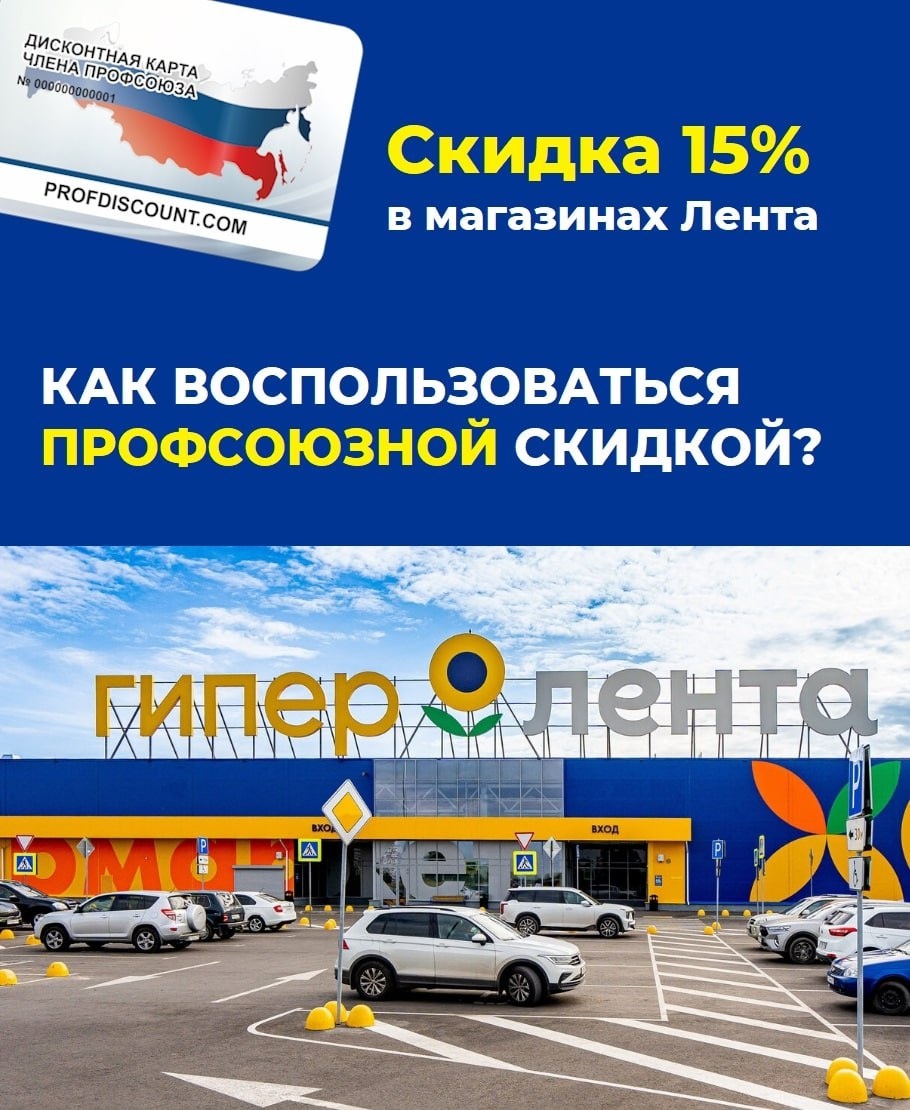 👪 Теперь в магазинах "ЛЕНТА" для членов профсоюза и их семей действует скидка 15% по индивидуальному штрих-коду