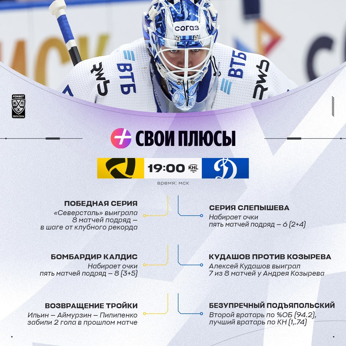 Безупречный Подъяпольский 🔵, ассистент Летунов 🦌, опасное звено Пинчука 🦬 — у каждой команды есть Свои Плюсы. Представляем самые важные на три игры вечера.