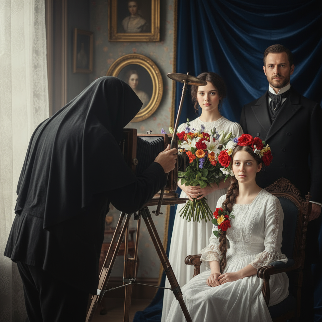 Последний снимок мисс Эмили, которая умерла два дня назад. Лондон, 1863 год. В мастерской фотографа мистера Олдриджа пахло химикатами и свечным воском. Перед объективом, задрапированным бархатом, сидела семья Уэверли. На первом плане – юная мисс Эмили, её кудри аккуратно уложены, глаза закрыты. Она умерла от чахотки два дня назад. Её брат дрожащей рукой поддерживал её спину, а сестра придерживала букет в её одеревеневших пальцах. «Прекрасно, не шевелитесь, – говорил Олдридж, накрываясь чёрным покрывалом. – Улыбочку…» Это был не чудовищный ритуал, а акт любви и отчаяния. Для семьи Уэверли это был единственный способ сохранить образ дочери, ведь при жизни её так и не сфотографировали. Так начиналась викторианская традиция, где горе и технология сплелись в причудливый танец. Фотограф подменил покойника на живого. Его мучила совесть. Мистер Олдридж был мастером своего дела. Он научился ретушировать стеклянные негативы, чтобы на финальном снимке проступали зрачки на закрытых глазах. Он ис