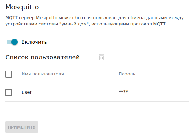 Всем привет! MQTT - сетевой протокол, предназначенный для обмена данными между устройствами. Первое устройство подключается к MQTT-серверу и публикует данные в определенный топик, в терминах MQTT такое устройство называется издателем. Второе устройство подключается к этому же серверу и получает данные из этого топика, это устройство является подписчиком. Топик - это что-то вроде почтового ящика, точки для обмена сообщениями. MQTT можно использовать для получения данных с датчиков, а так же для удаленного управления системой умный дом. На роутере с "умным домом" имеется сервер MQTT - программа "Mosquitto". Чтобы этот сервер задействовать, требуется в веб-интерфейсе управления роутером перейти в раздел "Умный дом", далее "Mosquitto". Создаем учетную запись для пользователя MQTT, задав логин и пароль, и включаем сервис. В Domoticz поддержка MQTT реализована посредством плагина. Чтобы его задействовать нужно в интерфейсе Domoticz перейти в меню "Setup", далее "Hardware". В поле "Type" выби