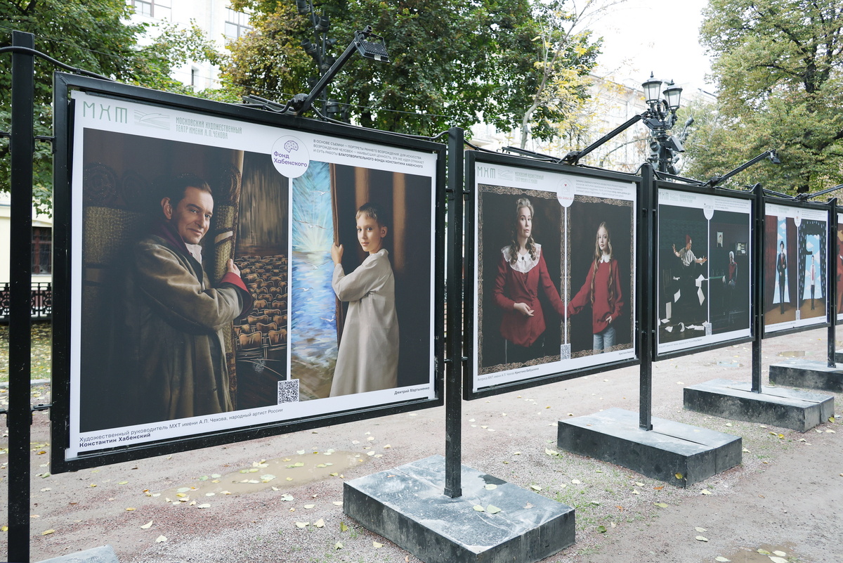 До 6 ноября на Гоголевском бульваре можно увидеть фотовыставку «Неслучайные параллели», созданную в рамках благотворительного проекта МХТ имени А.П. Чехова #ТеатрПомогает. Авторы идеи – фотограф, креативный директор Валентин Блох и искусствовед, креативный директор Светлана Толстая. В основу проекта «Неслучайные параллели» положена мысль о взаимосвязи жизни и сцены: весь мир – театр, театр спасает жизнь. Выставка состоит из десяти диптихов, каждый из которых отсылает к шедеврам изобразительного искусства разных эпох. Есть тут парафразы знаменитых полотен – «Девочки с персиками» Валентина Серова, «Весны» Сандро Боттичелли, полотна Дмитрия Жилинского «Гимнасты СССР», а есть отсылки к творческой манере того или иного мастера: например, Обри Бердслея или Александра Родченко… Каждый диптих посвящен одному благотворительному фонду, друзьями, учредителями или попечителями которого являются актеры Московского Художественного театра. Идея выставки родилась из ежегодного благотворительного проек
