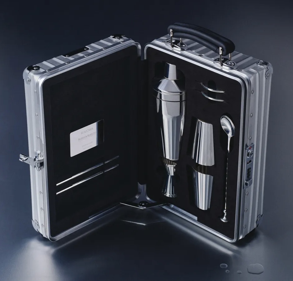 Rimowa выпустила коктейльный кейс в коллаборации с ювелирами Robbe & Berking. Классическая форма, алюминиевый чемодан, только внутри не одежда и зарядки, а барный набор из серебра. Шейкер, два бокала, ложка для коктейлей, подставки, соломинки — всё отполировано до зеркального блеска. Каждый предмет аккуратно расположен в мягком футляре как ювелирное украшение. Алюминий и серебро — прохладные, отражающие, но при этом невероятно выразительные. Получился эстетский сет стоимостью в 4.750 евро, предназначенный, для того, чтобы сделать нашу жизнь красивее, а впечатления от путешествий ярче.