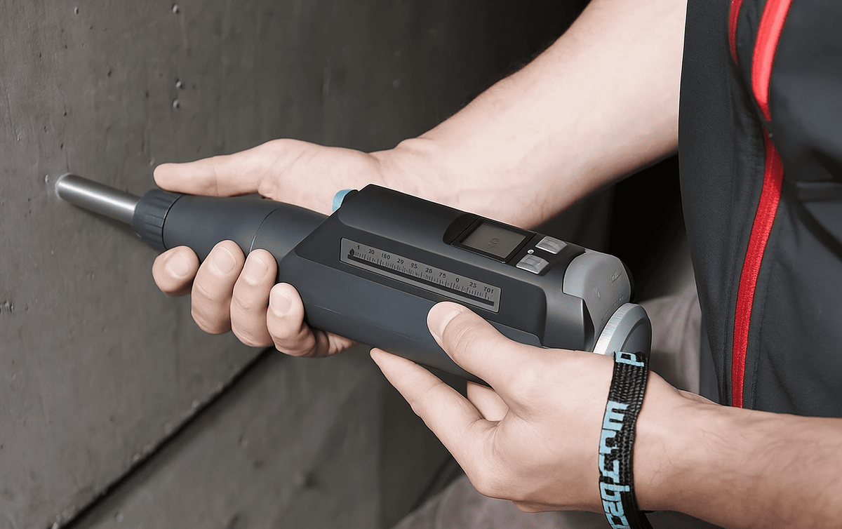 - Приём ударного импульса. Требует применения особого молотка Шмидта, которым нужно ударять по бетону, чтобы после зафиксировать образованную во время удара энергию. Точность вычислений при использовании приёма ударного импульса, увы, невысока.